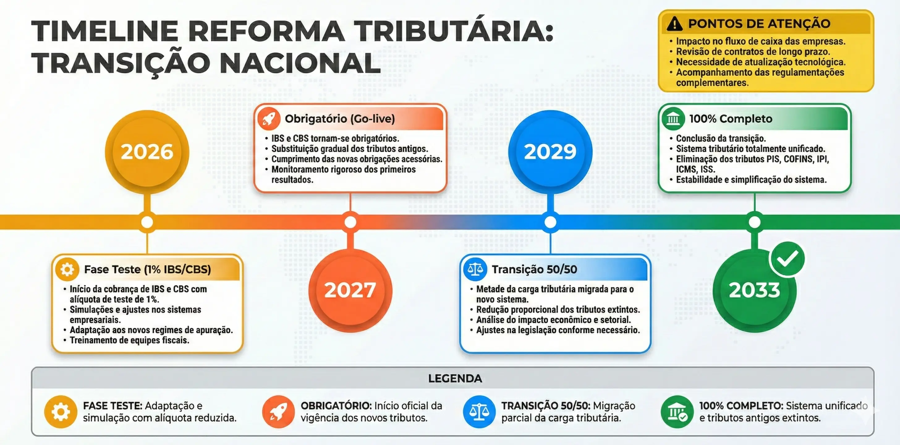 Cronograma oficial da Reforma Tributária e ações necessárias no Protheus em cada fase