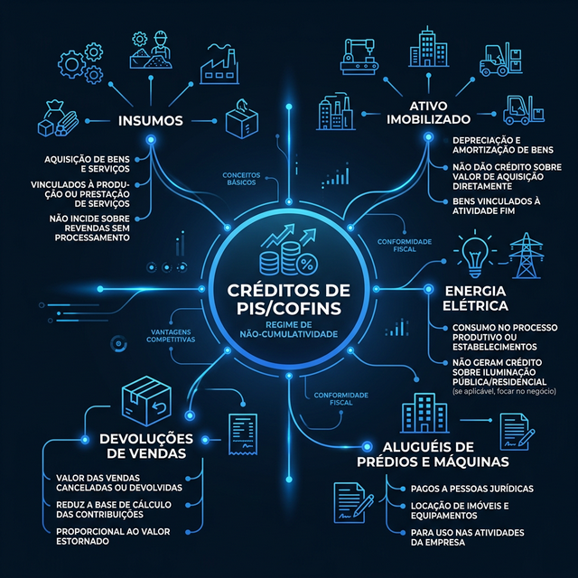 - Maquinário e Ativo Imobilizado: Crédito via depreciação ou imediato (conforme a lei).